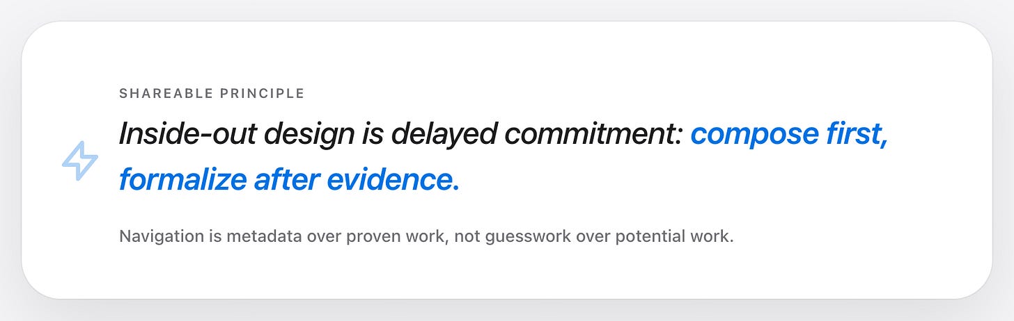 Inside-out design does not eliminate structure. It delays commitment.