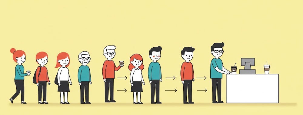 The outcome of that long line might surprise you. It turns out that long lines – when accompanied by sufficient cashiers - are faster than a short line for the median line member waiting for coffee.