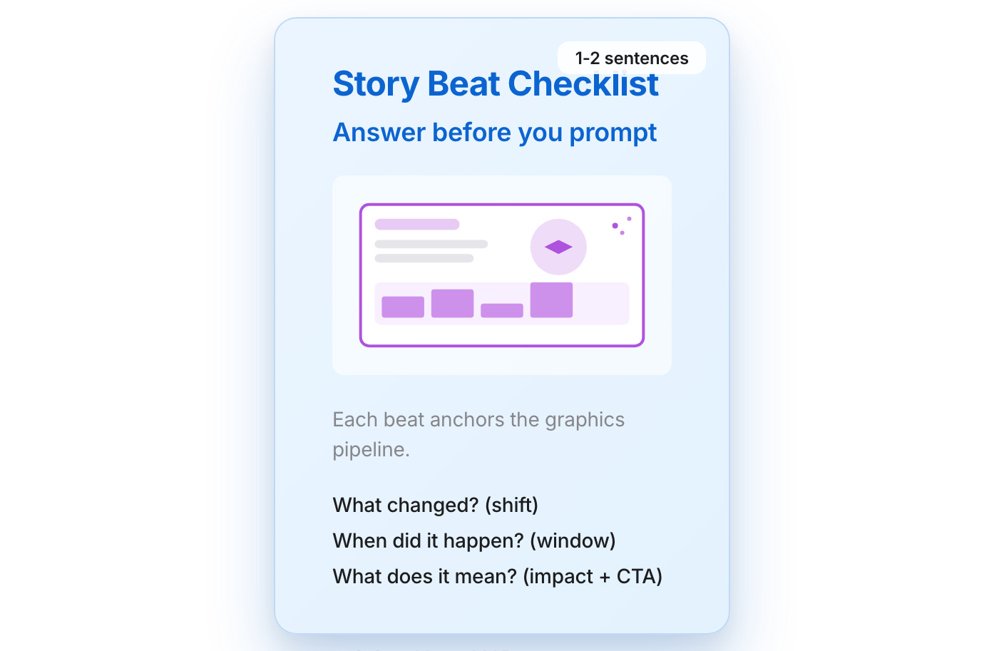 The template-as-schema approach nails something that gets lost when everyone rushes to "just ask ChatGPT." I've been playing with image generation for a while now, and the inconsistency is brutal when you need multiple graphics that actualy feel cohesive. The three-question framework (what changed, when, why it matters) is solid becasue it forces the story first, not the pixels. One thing I'd add from my own work: having that single-sentence test before you run the generator is huge. Saves so much back-and-forth trying to fix a visual that never had a clear narrative to begin with.