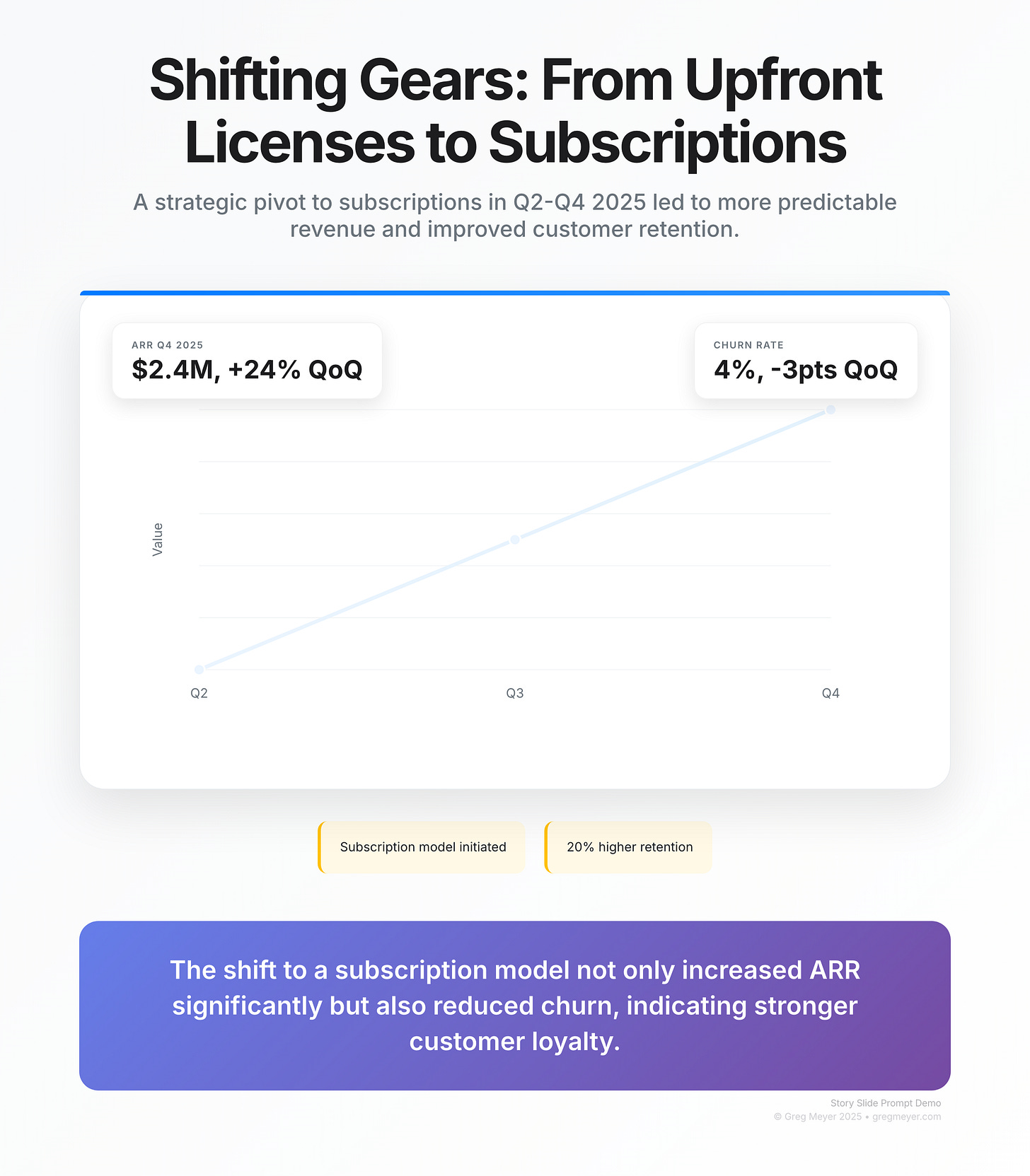 What’s the takeaway? This is the practical follow-up to Stop building slides: now you can actually prompt a deck-quality slide that keeps the story at the center. The robots will keep getting better at spitting out decks, but it’s on us to orchestrate the story.