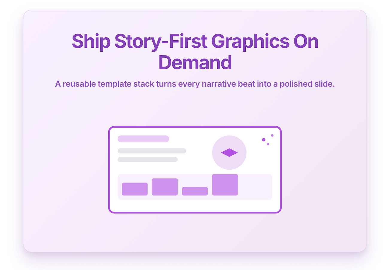 Think of it as your answer to those “can’t you just tweak the deck?” asks that always pop up ten minutes before the meeting. Instead of forking a Figma file and praying you remember every revision, you regenerate the graphic with updated data.