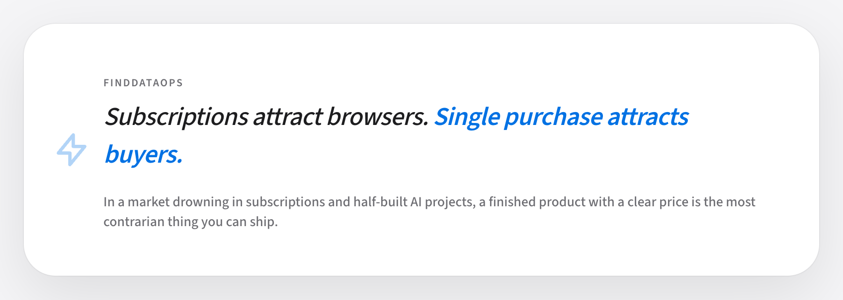 ⚙️ Subscriptions Attract Browsers. Single Purchase Attracts Buyers.