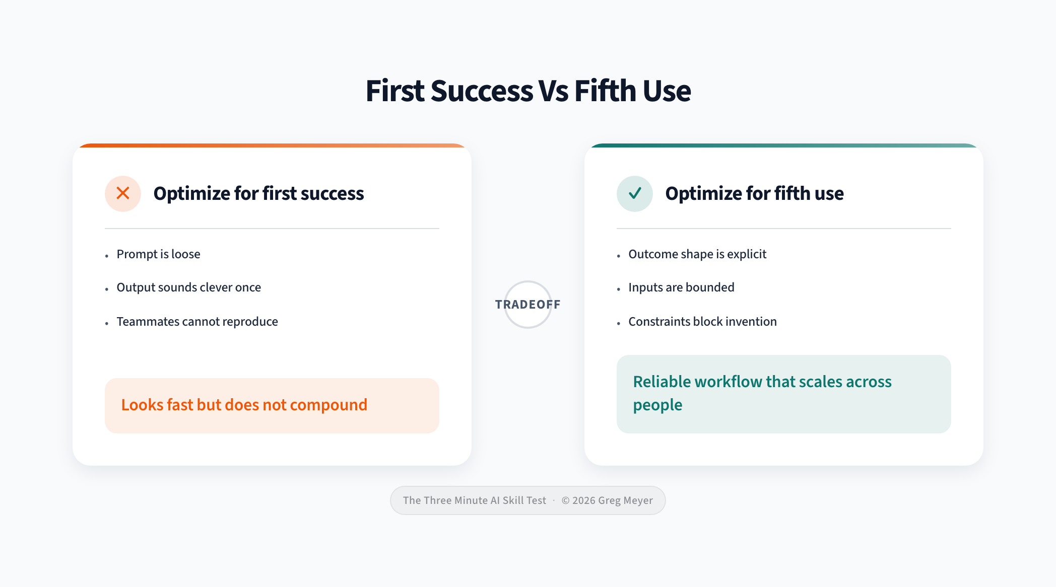 If the workflow survives the fifth use with a different teammate, you are building capability that goes beyond you!