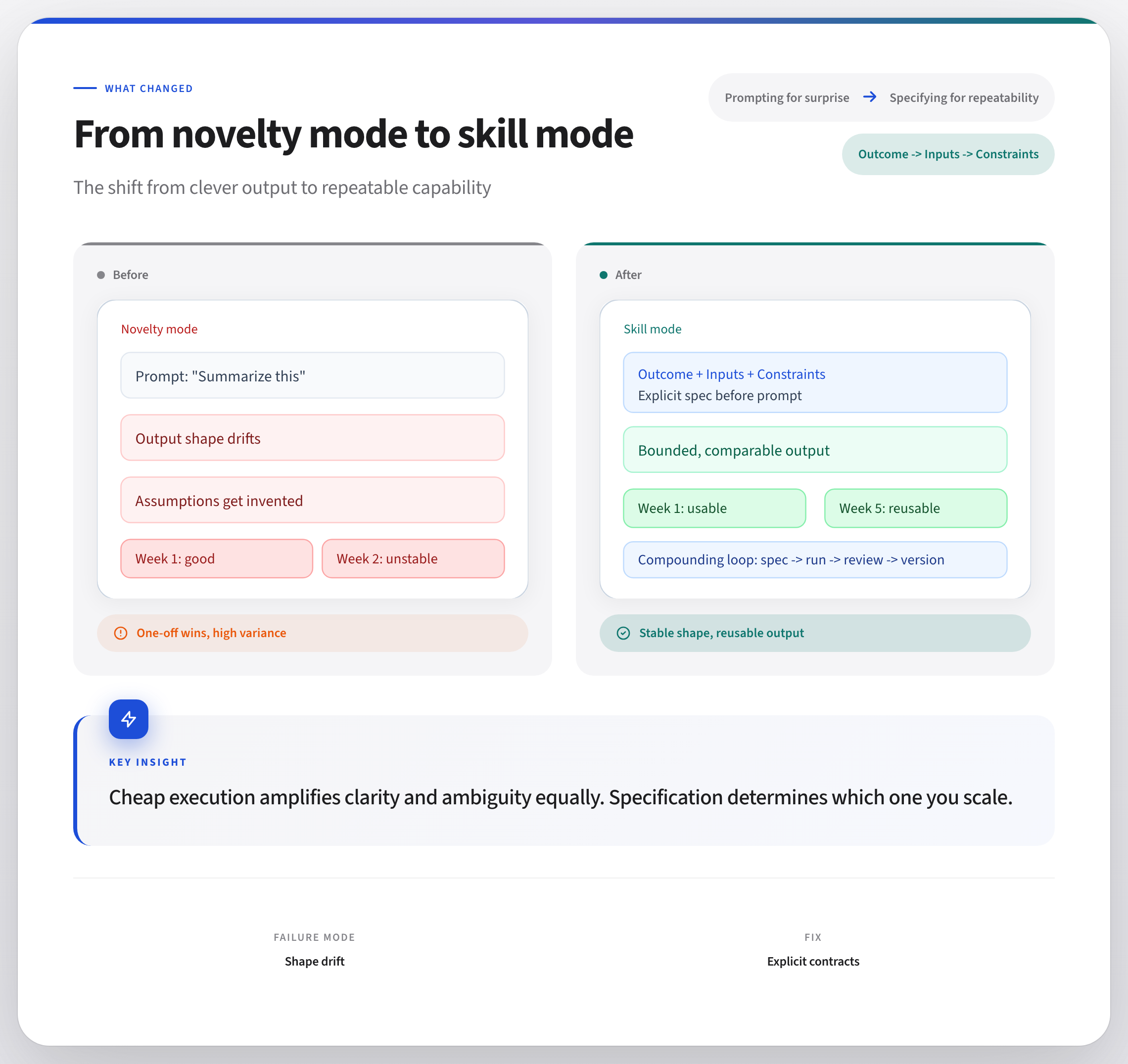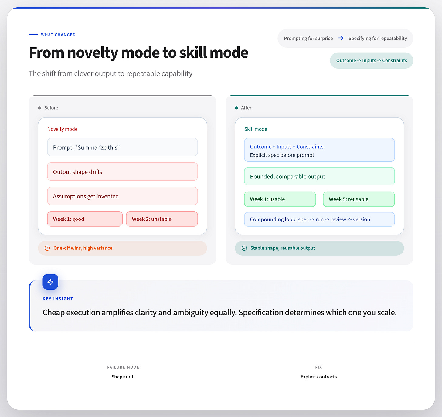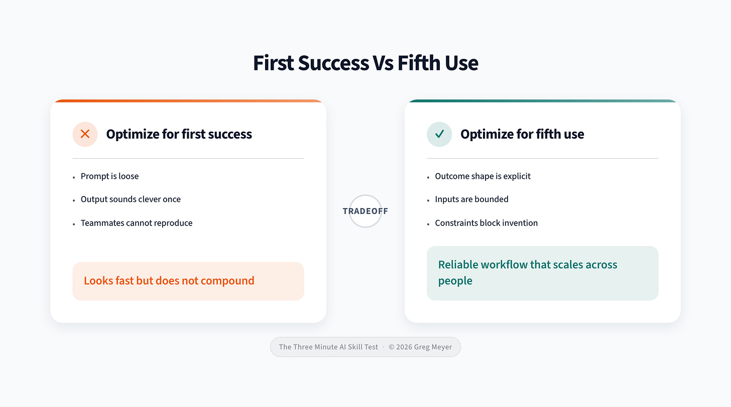 It is the difference between a clever prompt and a repeatable skill.