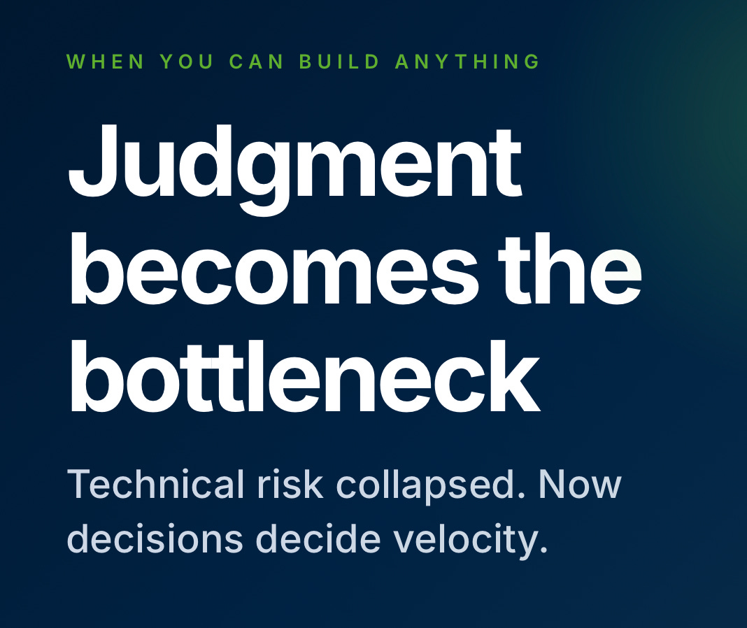 The most dangerous outcome of unlimited building capacity is that you can become very good at fixing symptoms without eliminating the root cause. The bottleneck moved from technical risk to judgment. You need to know when a fix teaches you something and when you are “kicking the can” and papering over a deeper flaw.